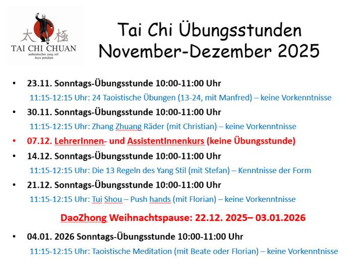 Anmeldung und weitere Info: info@taichi-potsdam.de; 033209-20950, https://dao-zhong.de