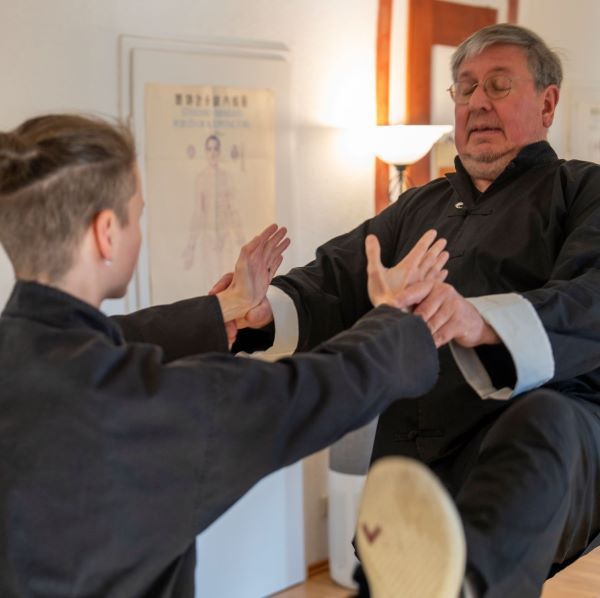 Auch wenn Kampfkunstaspekte heute meist nicht im Mittelpunkt des Interesses an Tai chi stehen, so führt die Arbeit mit der Inneren Energie (chin: Nei-k'ung) auf dem Tai chi Weg doch zu einem erhöhten Potential an Ch'i und I. Verbunden mit dem verbesserten Körperbewußtsein des Tai chi Lernenden entwickelt sich fast von allein auch die Fähigkeit zur Auseinandersetzung mit einem Gegenüber. Spielerische Partner-Übungen und Ch'i Tests lassen uns im Unterricht die oft überraschenden und völlig aggressionsfreien Ch'i Kräfte in uns selber entdecken. In fortgeschrittenen Stufen können dann auch Anwendungen des Tai chi in der Kampfkunst erlernt werden.